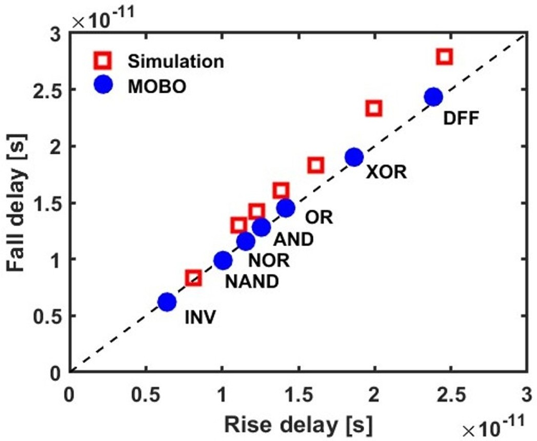 a limited cell height, achieving a 1:1 rise-fall delay ratio. As shown in Table 1, the proposed approach outperforms existing methods by optimizing both aspects without