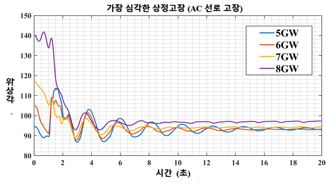 최종적으로 모든 상정고장에서 과도안정도를 확보하기 위한 적정 운전범위는 5-8GW로 도출되었다. 적용된 DB는 호남권의 재생에너지 발전량이 기구축된