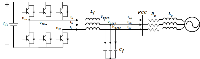 Vpccb, Vpccc는 PCC에서의 순시 전압을 의미한다. 또한, Lf와 Cf는 컨버터 출력단측 필터를 나타내며, Rg와 Lg는 계통의 등가 임피던스를