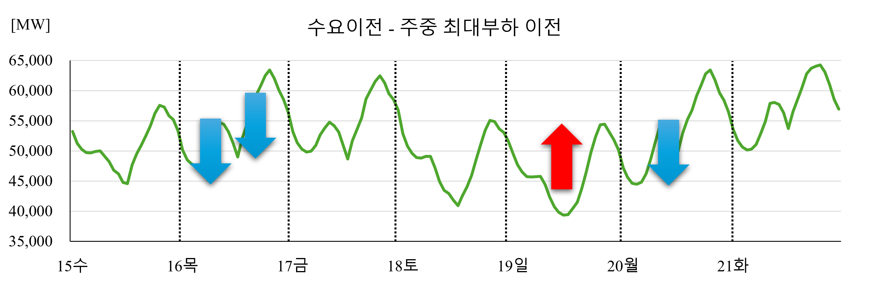 부하이전 및 발전량 감축에 대한 영향을 분석하는 것이 필요할 것으로 생각된다. 현 단계에서는 일요일의 부하 증가만을 고려했지만 차후엔 토요일도 부하증가를