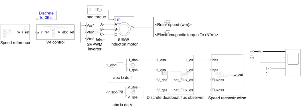 Discrete Flux Observer, Induction Motor, Speed Estimator, Sensorless, V/f Control