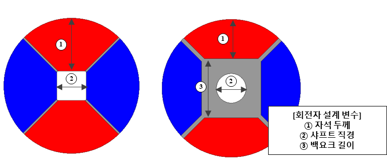 전자기적 특성 및 회전자 관성을 고려한 설계를 진행하였다. 기존 연구들이 전자기 특성에만 초점을 둔 것과 달리, 본 연구는 관성 제약 조건을 명시하고