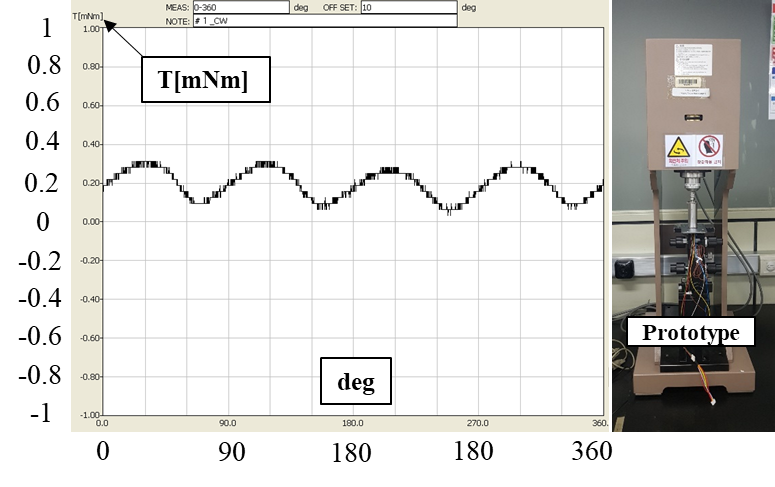 시뮬레이션뿐만 아니라 시작품을 이용한 실험을 통해 검증되었다. 특히, 부하 조건에서 목표 토크인 25 mNm 이상을 구현하였고, 해석 결과와의 오차는