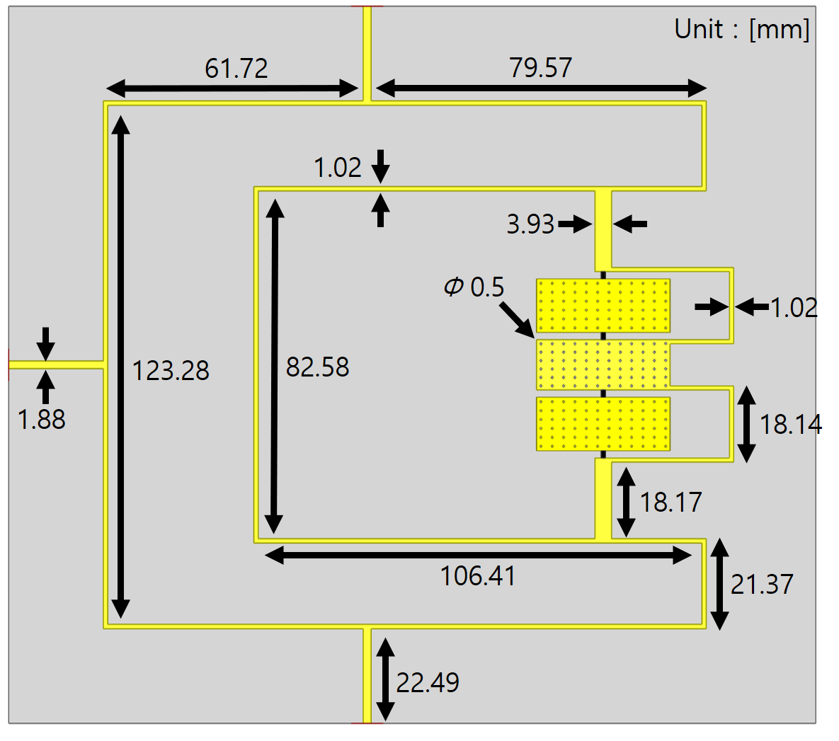 Fig. 12. Substrate reflecting high-power resistance characteristics through EM simulation