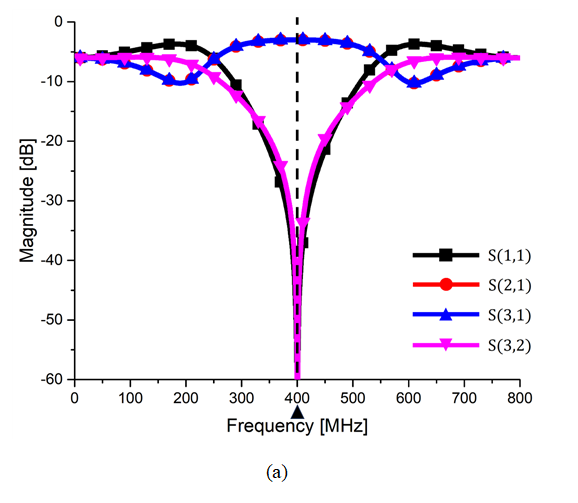 제안한다. 제안하는 설계 방법을 검증하기 위해 중심 주파수 400[MHz]에서 반사손실을 의미하는 $S_{11}$과 격리손실을 의미하는 $S_{22}$가