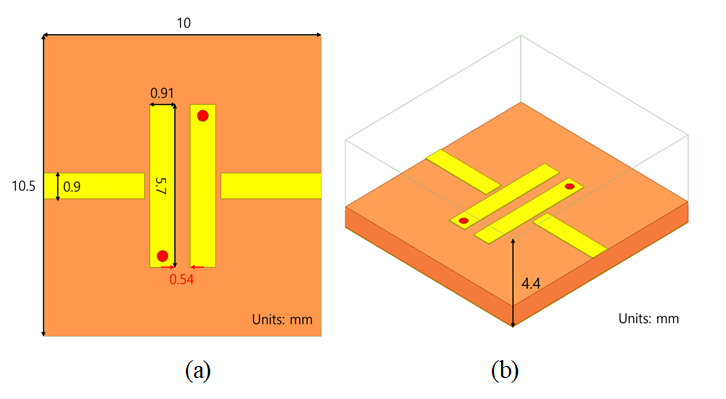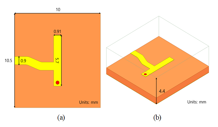 loss๋ฅผ ๊ฐ์ ํ๊ธฐ ์ํ์ฌ microstrip ๊ตฌ์กฐ ์์ cover๋ฅผ ๋ฎ์ ๊ตฌ์กฐ๋ก ์ค๊ณ๋๋ฉฐ ํฌ๊ธฐ๋ $28.5\times 10.5\times 4.4\left[mm^{3}\right]$์ด๋ค.