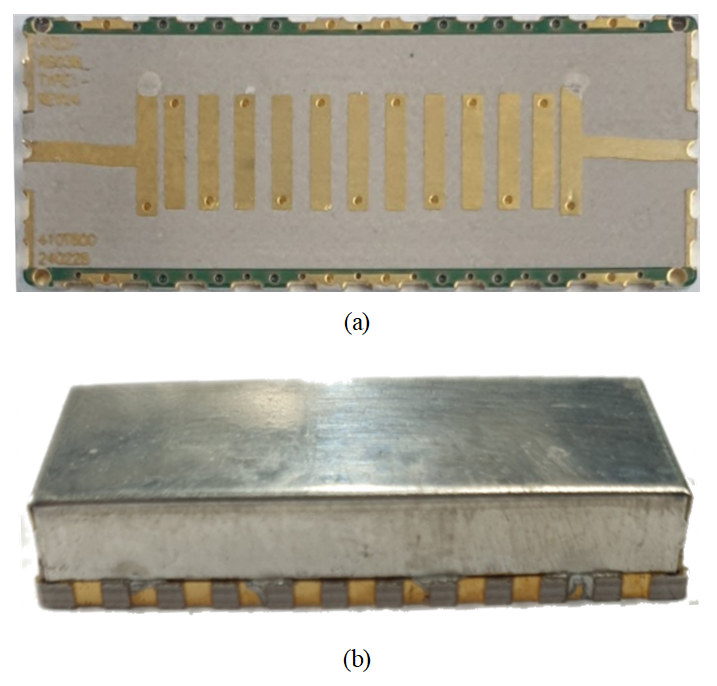 Fig. 13. Fabricated interdigiter bandpass filter (a) Fabricated bandpass filter (b)