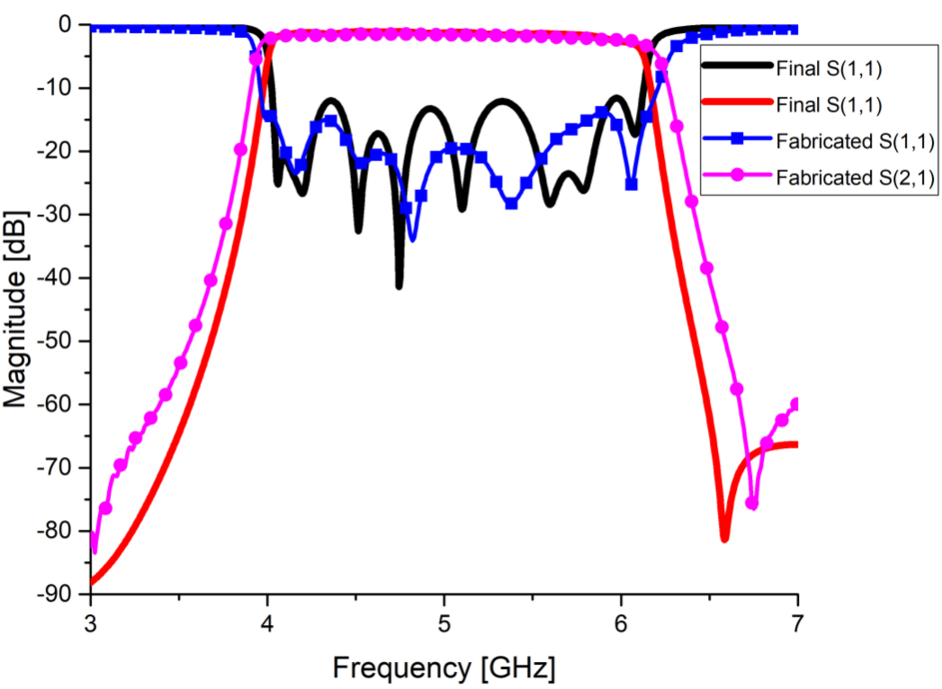 Fig. 14. Comparison of characteristics of designed and manufactured filters