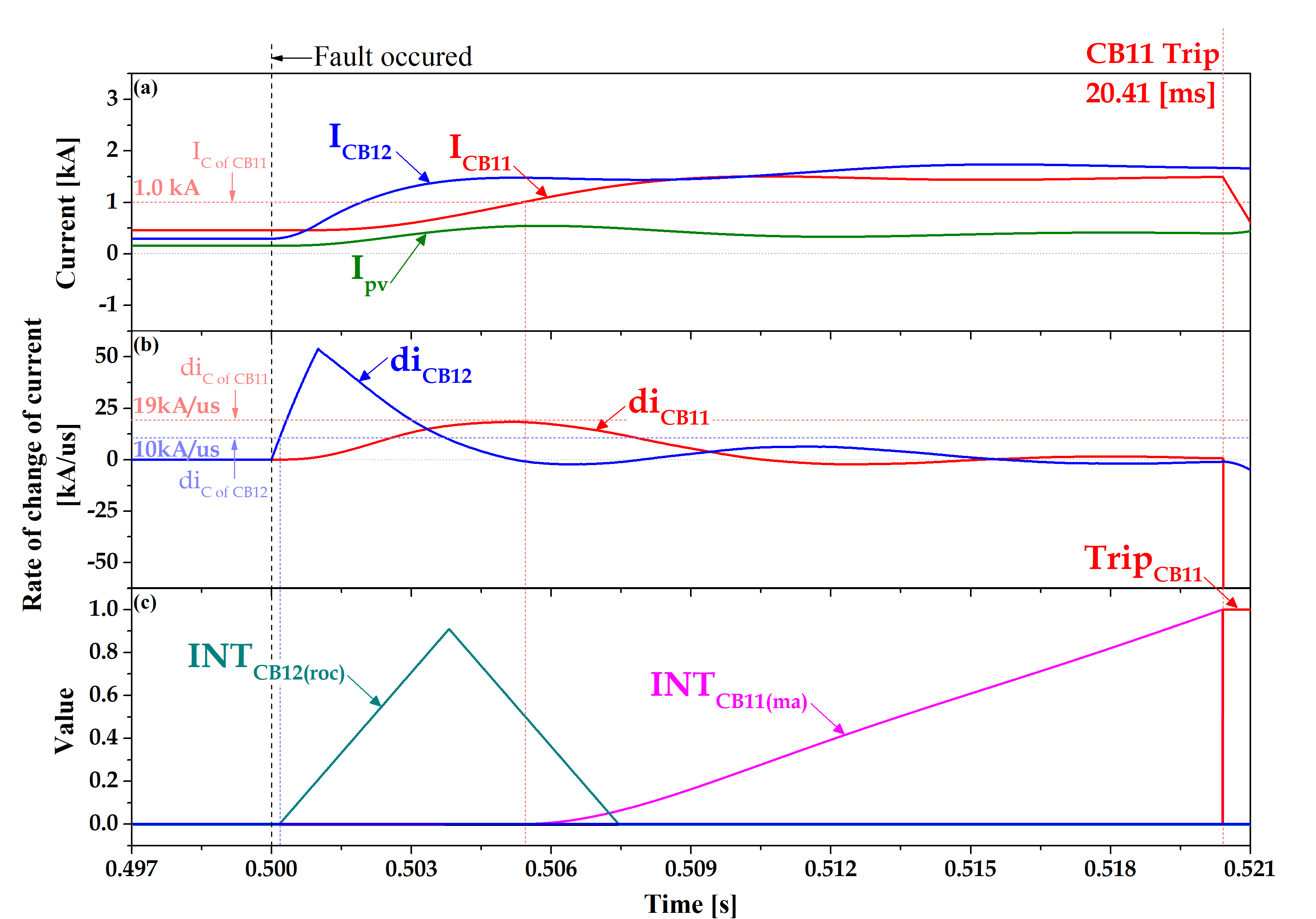 ์ ๋ก์ ์ค๊ฐ์์ ๊ณ ์ฅ์ด ๋ฐ์ํ FC ๋๋ FF ๊ณ ์ฅ์์๋ CB11 ๋๋ CB21์ด ์ฒซ ๋ฒ์งธ๋ก ๋์ํ๋ค. CB11 ๋๋ CB21์์ ๋ณดํธ ์คํจ ์ CB11