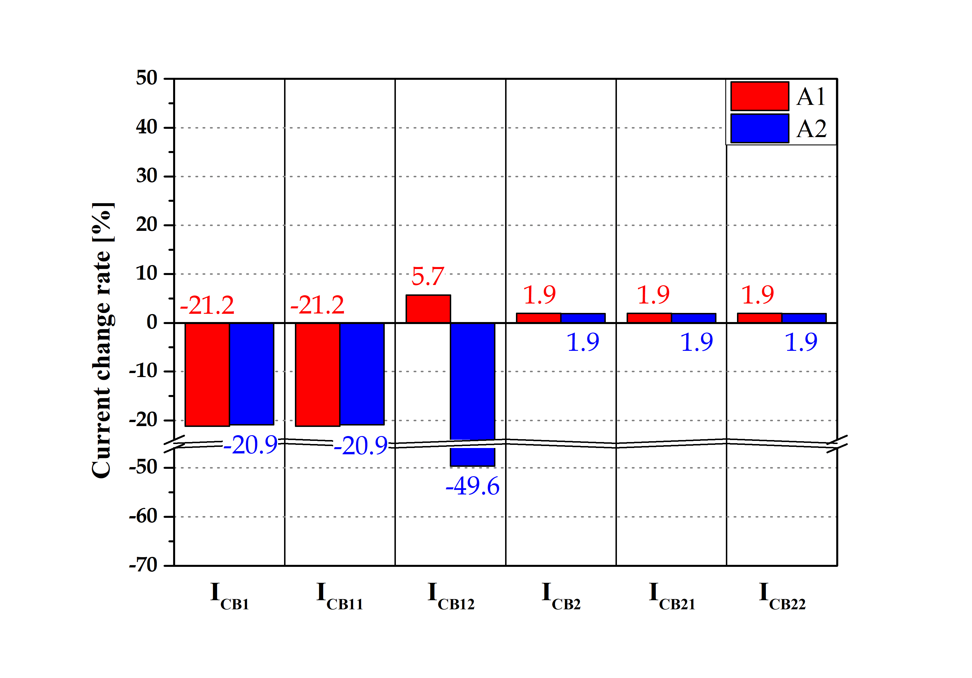 ${I}_{{n}}$์ ๋ถ์ฐ์ ์์ด ์ฐ๊ณ๋ ์ฌ๋ก์ ์ ๋ฅ ํฌ๊ธฐ๋ฅผ ๋ปํ๋ฉฐ, ${I}_{1}$์ ๋ถ์ฐ์ ์์ด PCC1์ ์ฐ๊ณ๋ ์ฌ๋ก์ ์ ๋ฅ, ${I}_{2}$๋