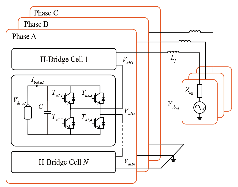 H-Bridge (CHB) ์ปจ๋ฒํฐ๋ H-Bridge๋ฅผ ๋ชจ๋๋ก ํ๋ ๊ตฌ์ฑ์ผ๋ก ์ ๊ฒฉ ์ ๋ ฅ์ ์ ์ฐํ๊ฒ ์ค๊ณํ ์ ์์ผ๋ฉฐ, ๊ณ ์ฅ ๋ฐ์ ์ ๊ฐ ๋ชจ๋ ๋จ์์