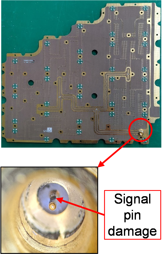 Fig. 10. Power combiner of 3rd antenna and damaged point