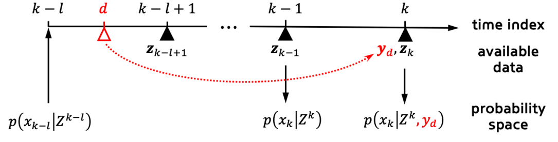 위해 도입한 시간 불일치 보상 필터는 매 시점 재귀적(recursive)으로 구현 가능하므로, 역전파에 의존하는 기존 OOSM 필터보다 요구되는 메모리가