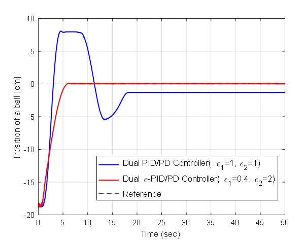 ๊ทธ๋ฆผ 1. ์ด์ค $\epsilon$-PID/PD์ ์ด๊ธฐ์ ๋ฐ๋ฅธ ๋ณผ-๋น ์์คํ