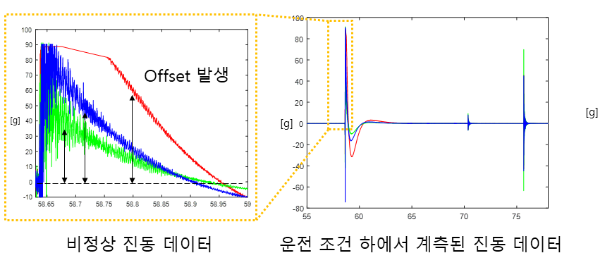 정상 상태 (normal)의 경우, Fig. 1과 같이 VCB가 동작하며 진동 신호가 계측된다. 하지만, VCB에 기계적 고장이 발생한 경우, 정상 상태와는 다른 파형이 진동 센서에 계측된다.