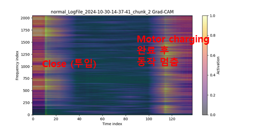 주목할 만한 점은 해당 impact에서 STFT의 전주파수 영역에 걸쳐 activate가 된다는 것이다. 이를 통해 모델이 시간 축으로는 impact에만