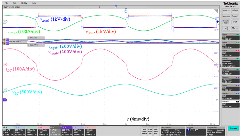 직류 전압을 공급받게 되고, TP를 구성하는 SM은 내부 다이오드 정류 동작을 통해 900V까지 충전된다. 이 상태에서 MC의 공진 전류 제어를 수행하는