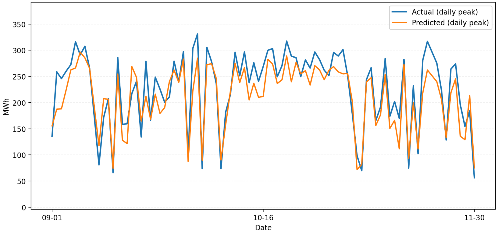 Fig. 9. Daily Peak: Actual vs. Predicted โ Autumn