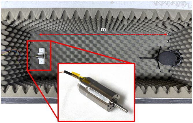 소음 특성 측정에 중점을 두어 실험을 진행하였다. 소음 측정은 전동기와 1m의 거리를 두고 마이크를 설치하여 수행하였으며, 외부 소음을 영향을 최소화하기