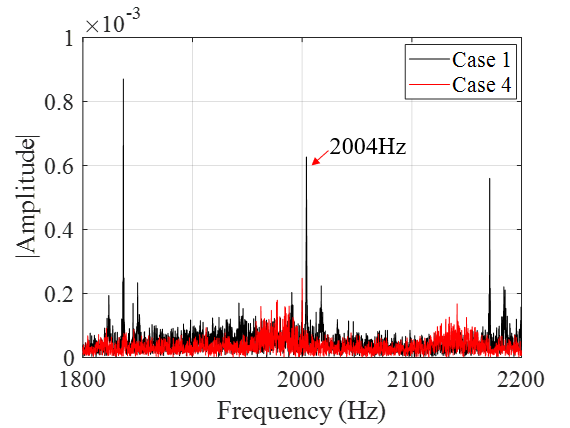 또한 해당 전동기의 인가 주파는 334Hz이기 때문에 6차 고조파에 해당하는 주파수는 2004Hz가 된다. 6차 고조파는 토크 리플과 연관이 있는
