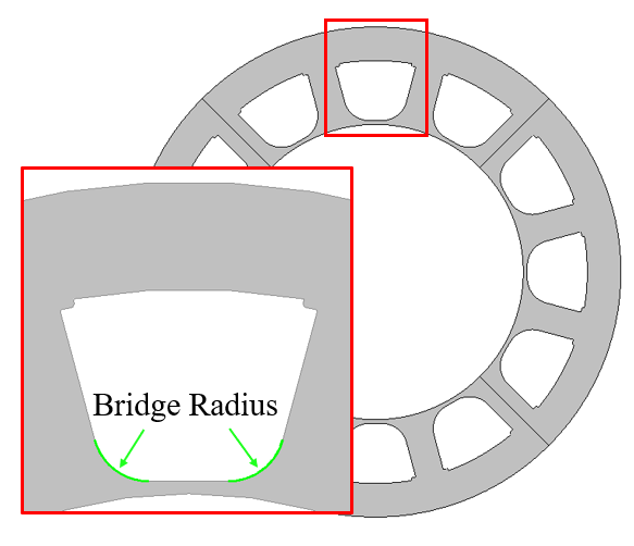 본 논문에서 진행된 해석에서는 고정자 슬롯의 포화 영역에 변화를 주기 위해 브릿지 각도가 조정되었다.
