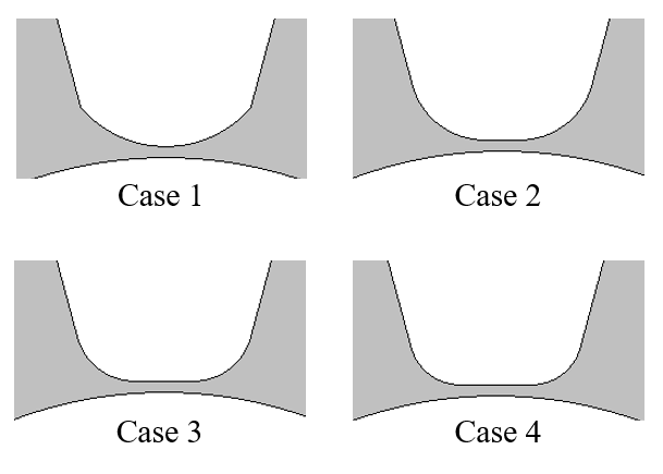 그림 3는 표 2의 고정자 브릿지 각도를 입력하였을 때 얻을 수 있는 각 케이스 별 고정자 슬롯 형상을 보여준다. 케이스의 수가 증가할수록 브릿지의 형태는 원에 가까워지며,