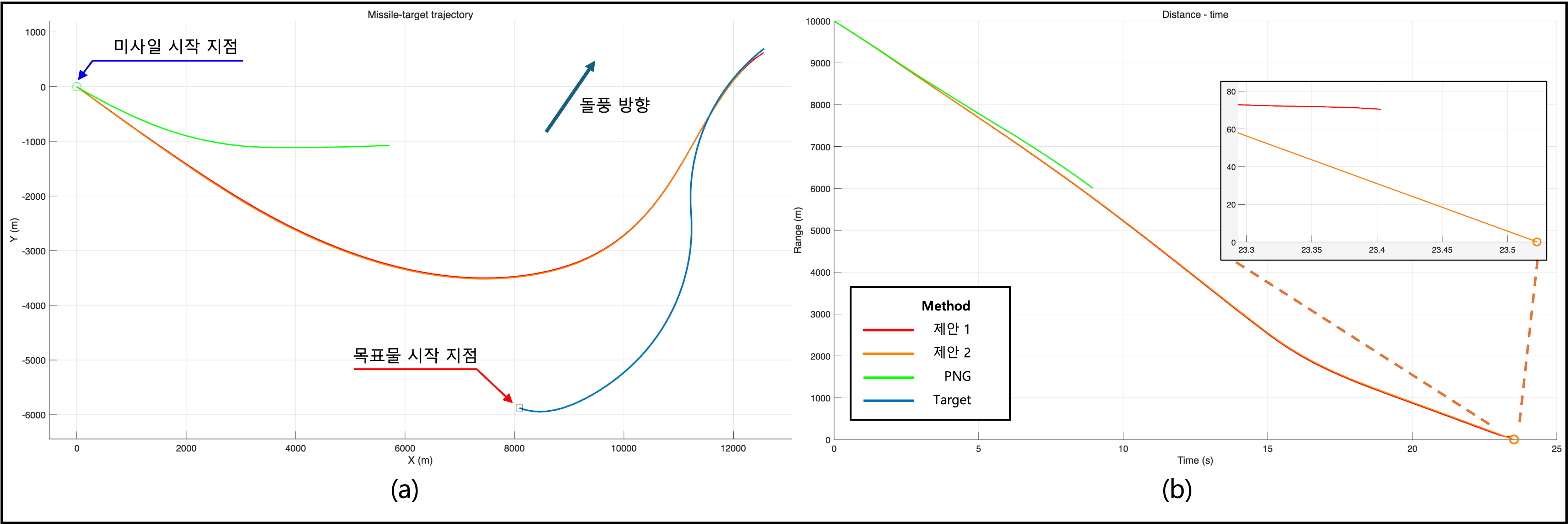 해결하기 위해서는 계산 복잡성과 학습 데이터와 계산 자원에 대한 의존성이 크며 설계자가 명시적으로 안정성을 보장하기 어렵다는 한계가 있다[7,21,22]. 또한, 강화 학습 기반의 방법은 PNG에 비해 제어 효율과 안정성 면에서 일관된 성능을 보장하지 못하는 경우가 많다는 단점이 있다[8]. 이러한 한계로 인해, 실전 배치 시 안정성과 신뢰성 확보가 주요 과제로 남아있다.
