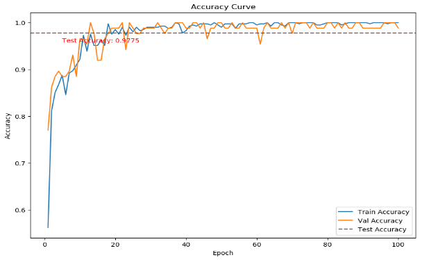 on both the validation set and the test set (test accuracy reached 1.0000), indicating