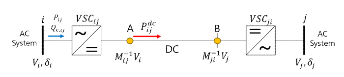 Hybrid OPF์์์ $i-j$๋ชจ์ ์ ์ฐ๊ฒฐํ๋ ์ ๋ก์ ํ๋ฅด๋ ์ ํจ์ ๋ ฅ ์กฐ๋ฅ๋์ ์๋ฏธํ๋ค.