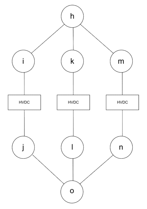 ์ฌ๊ธฐ์, 1-5 ๋ชจ์ ์ฌ์ด๋ฅผ ์ฐ๊ฒฐํ๋ ์ ๋ก๋ HVDC ๋ชจ์ ๊ณผ ์ง์ ์ฐ๊ฒฐ๋์ง ์์ ์ ์ฃผ ๋ด๋ฅ ์ ๋ก์ด๋ฉฐ, 28-20, 25-24 ๋ชจ์ ์ฌ์ด๋ฅผ ์ฐ๊ฒฐํ๋