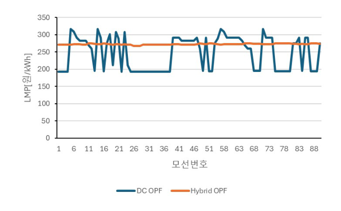 ์ ํต์ ์ ๋ฐ์ ๊ธฐ์ ๊ธฐ๋ยท์ ์ง ์ํ๋ DC OPF์ Hybrid OPF ๋ชจ๋ ๋์ผํ์๋ค.