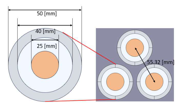 Fig. 1. Magnetic field analysis model of a three-phase power cable