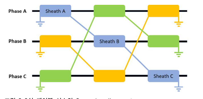 금속 시스를 동일한 길이의 섹션으로 구분하고 각 루프를 서로 다른 상의 시스로 교차 접속하면, 3 상의 유도전압이 상쇄되어 순환전류가 크게 줄어든다.