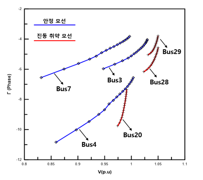 ๊ฐ ๋ถํ์ ๊ฐ๋ณ ํธ๋ฆฝ ์๋๋ฆฌ์ค๋ฅผ ์ ์ฉํ๊ณ , ๊ต๋ ๋ฐ์ ์งํ์ ํํ ๋ฐ์ดํฐ๋ฅผ ๋ถ์ํ์ฌ ์์ ๋ชจ์ ๋ฐ ์ง๋ ์ทจ์ฝ ๋ชจ์ ์ ์๋ณํ์๋ค. IEEE 39-Bus