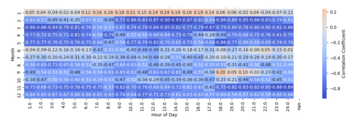 그림 17. 재생에너지 발전량과 SMP의 월-시간별 부분 상관계수
