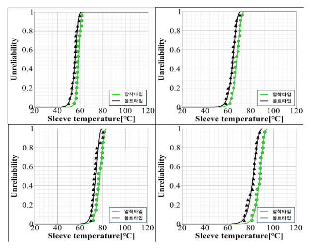 열적 특성 측면에서 더 우수한 것을 확인하였다. 용접 타입 슬리브는 모두 기준도체보다 높은 온도를 유지하여 가장 열적 특성이 좋지않았다.