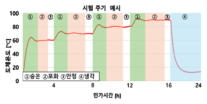 500사이클을 반복하기를 권고하고 있지만, 목표온도에 도달하는데 필요한 시간과 냉각되는데에 필요한 시간이 4시간 이상이기 때문에 현실적으로는 장기간
