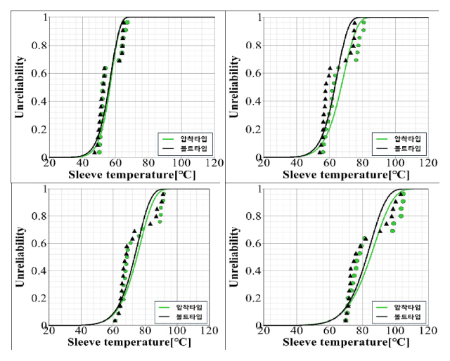 그림 9. 알루미늄 나전선 접속부 Weibull 분포간 비교