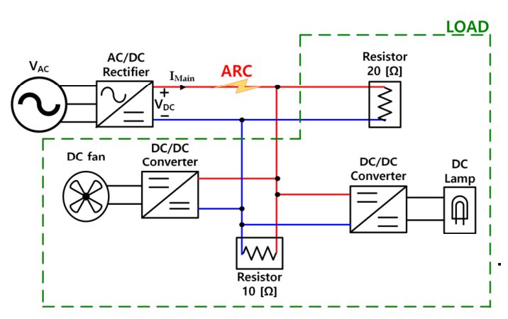 병렬 연결된 조합으로 구성하였다[10]. 아크 회로와는 별도로, DC 부하(DC Fan, DC Lamp)는 24 [V] 구동 전압이 필요하므로, 입력 전압 범위가 67.2-154 [V]로