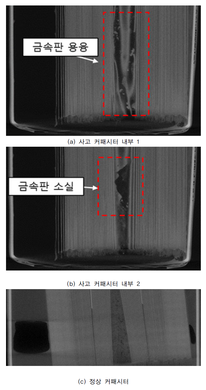커패시터 반 화재 발생 시 특정 셀에 대한 내부단락 여부를 X-ray를 통해서 분석할 수 있다. 절연열화, 충격, 발열 등의 이유로 인해 커패시터의