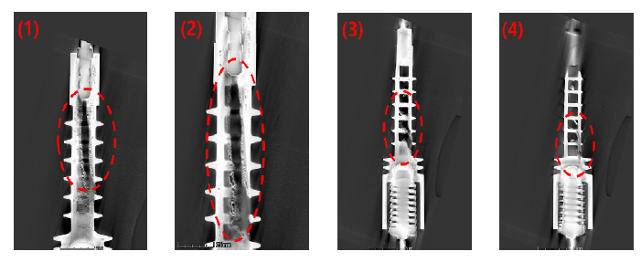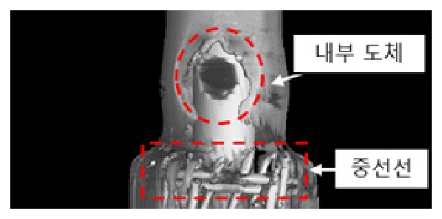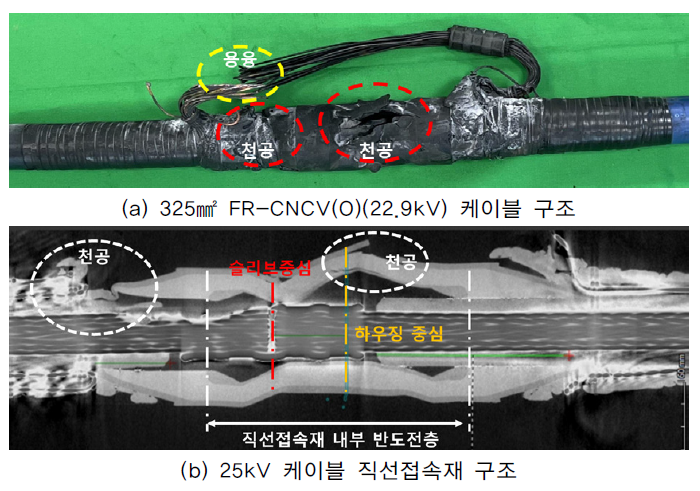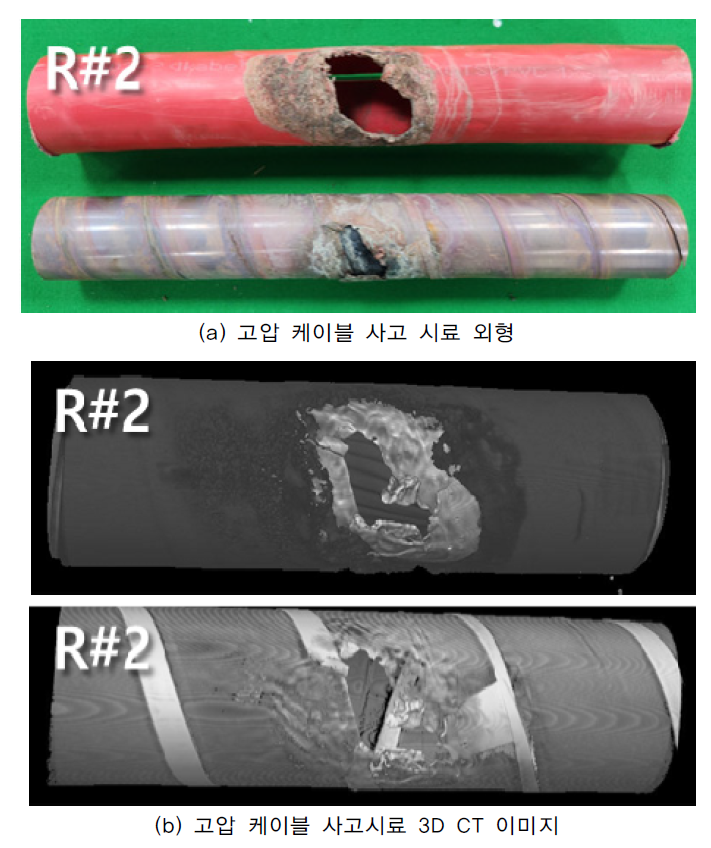 케이블 및 접속재의 경우, CT 분석을 통해 도체 내부의 용융흔 및 재용융층의 두께 변화를 확인함으로써 단락 시점의 열 집중 경로와 전류 흐름 방향을