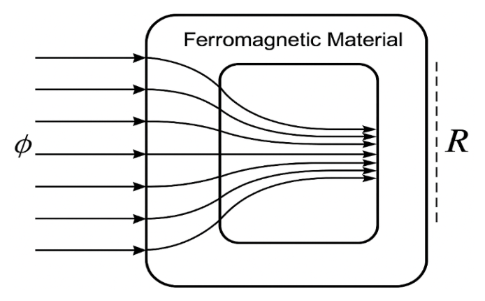 그림 2. 강자성체 내부의 자속 집중 개념도