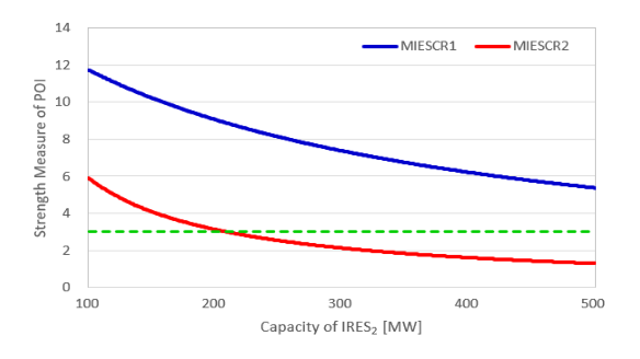 그림 3. IRES2 용량에 따른 수정 Garver 계통의 MIESCR