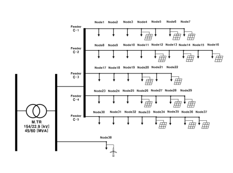 Effective SCR)을 소개하고, 수정 Garver 송전계통과 제주 하이브리드 전력계통의 C 권역 배전계통에 적용한다. 먼저 PV 및 WP 연계를