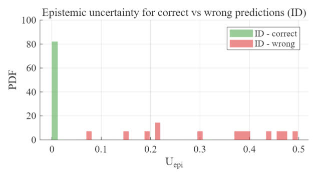 그림 11. ID 샘플 중 정답 및 오답에 대한 $U_{epi}$분포 비교
