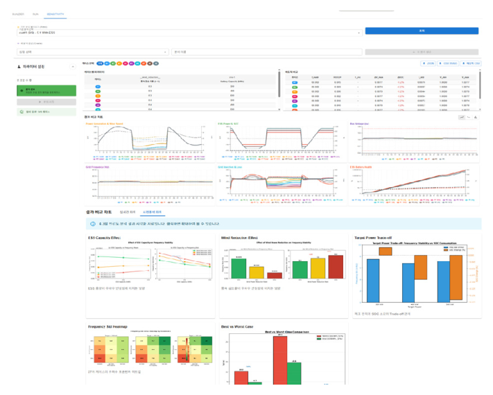 이는 ESS 용량이 주파수 안정화 성능에 중요한 설계 변수임을 시사한다. 셋째, 배전계통 운영자가 프로그래밍 지식 없이 웹 인터페이스를 통해 시뮬레이션을