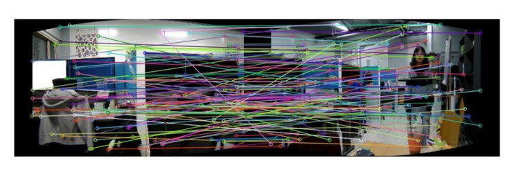 4], SuperPoint[5]를 활용하여 특징점을 추출하며 BruteForce 매칭으로 대응점을 찾는다. 이후 RANSAC[6] 알고리즘을 통한 이상점을 제거, 어파인 변환(Affine Transform)을 통한 이미지 왜곡 및 알파 블렌딩의 과정을 거쳐 자연스러운 파노라마