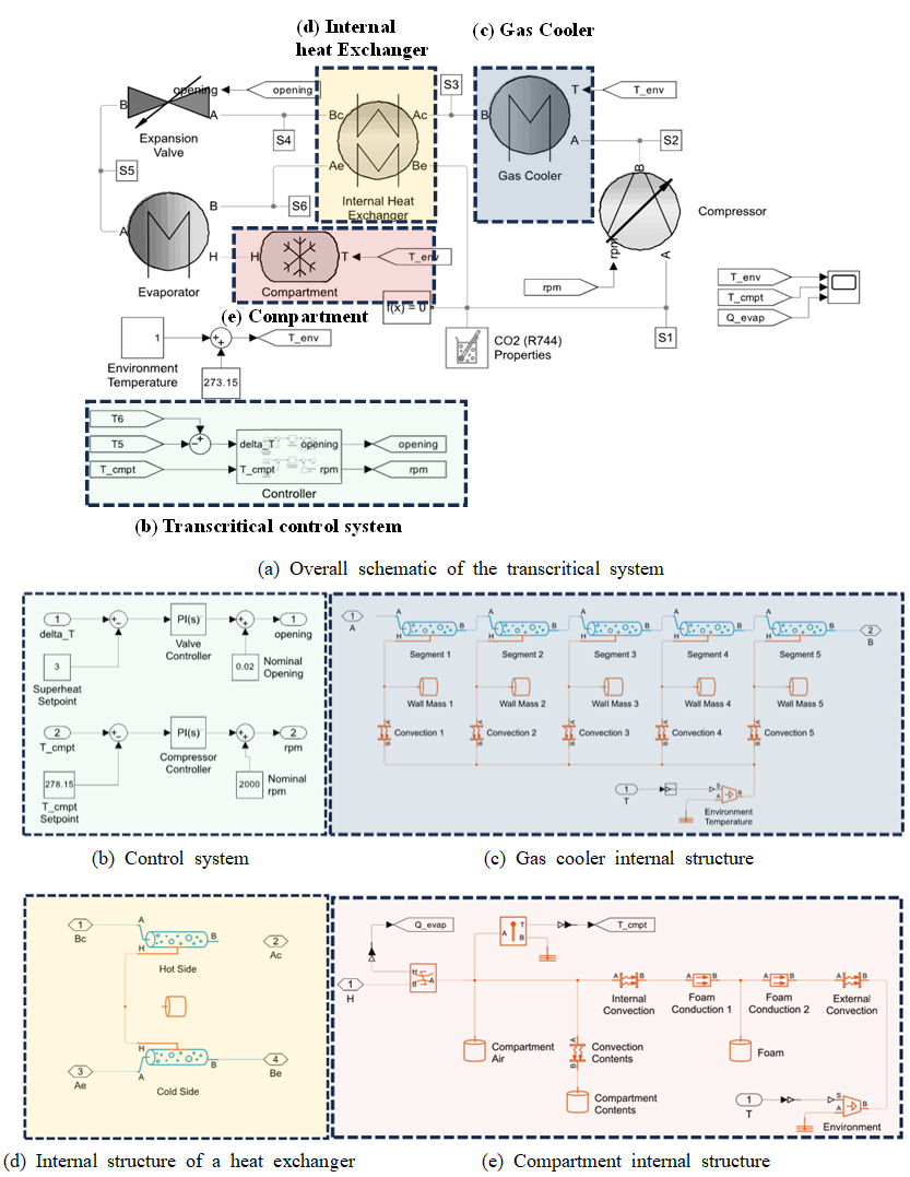 CO2 refrigeration system, Internal heat exchanger, Simscape, Simulink, Superheat, Transcritical