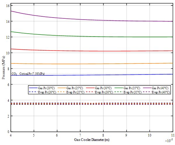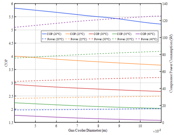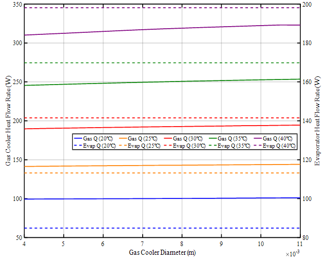 냉동 용량($Q_{evap}$)을 향상시키는 데 직접적으로 기여함을 보여준다. 이러한 결과는 증발기 및 가스쿨러의 열전달 성능 최적화를 제시한 Ye