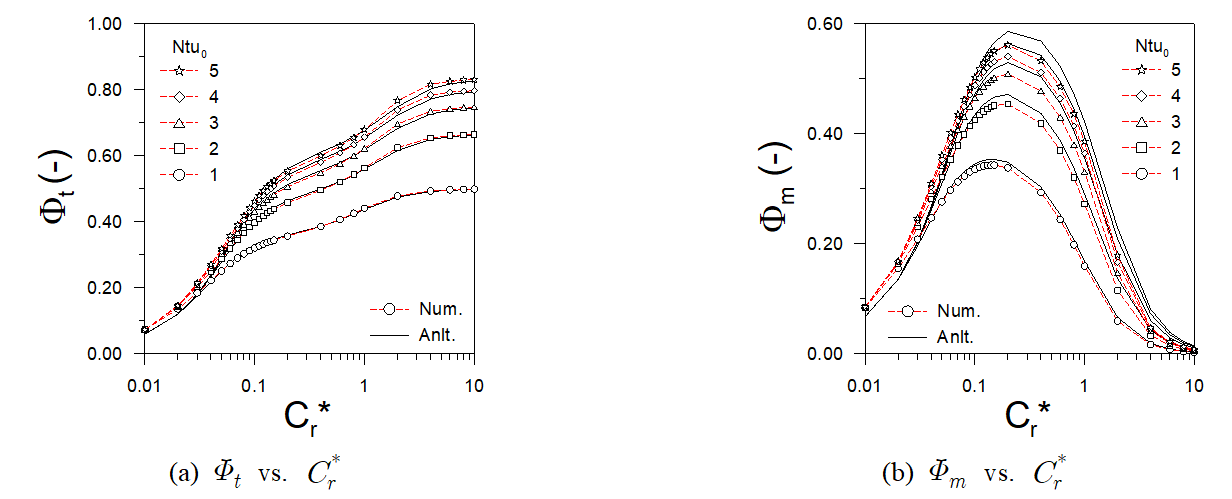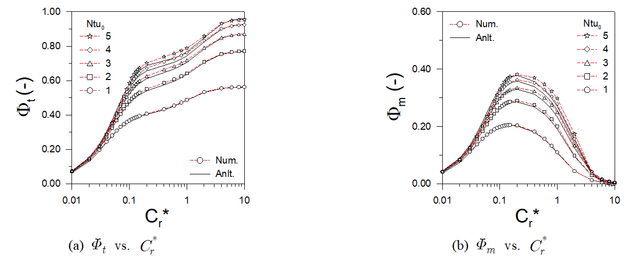 여기서 $C_{n}$은 미지수이고 $\phi_{h}$와 $\phi_{c}$는 Table 2에, $\lambda$와 $U^{*}$는 식(35) ~ 식(36)에 정리하였다.